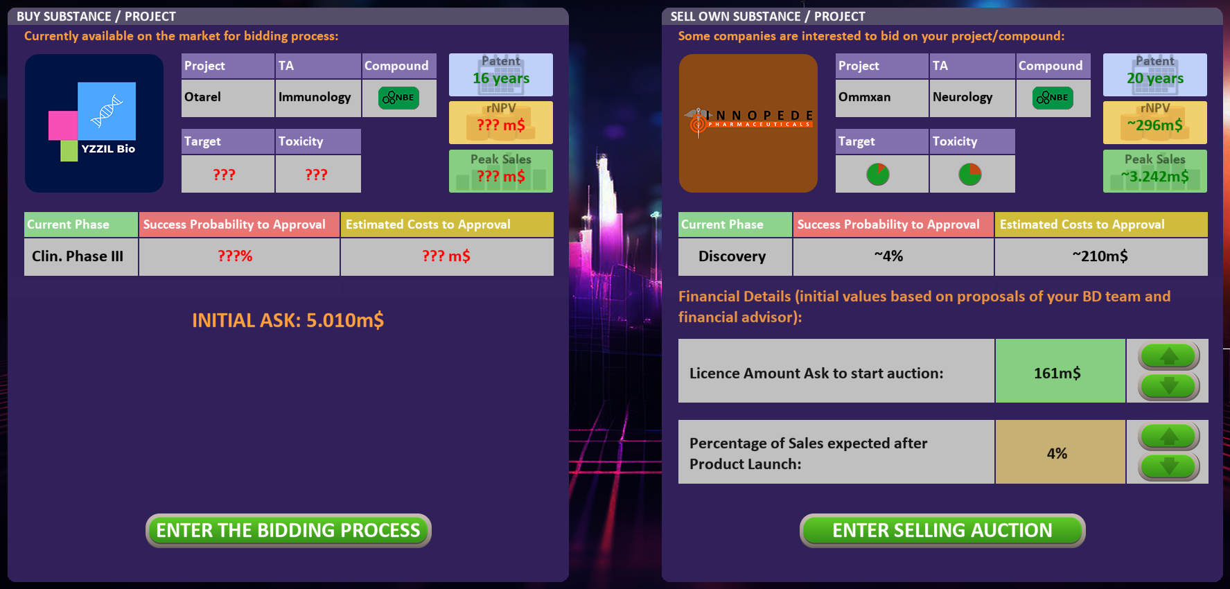 Pharma R&D Manager is a round-based strategy game. Before a new quarter (next round) starts you can adjust your project portfolio, make HR decisions, buy and sell projects/compounds, adjust financials, check drug/patient safety profiles of your products etc.